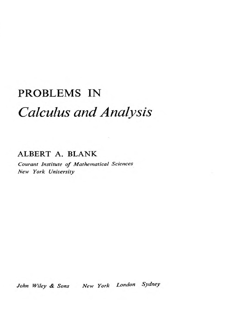 Problems In Calculus And Analysis By Albert Blank Pdf