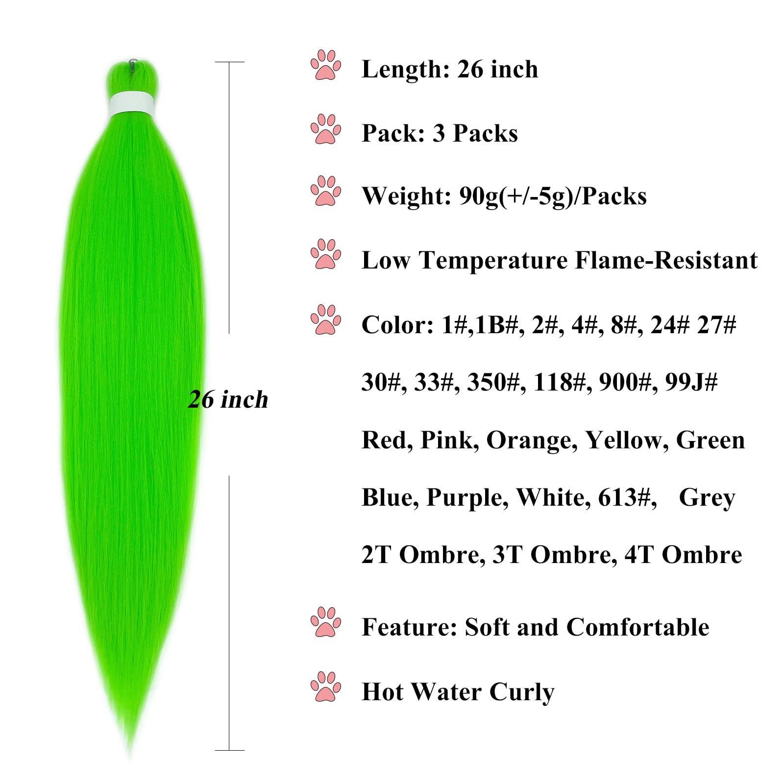 Amazon Com Neon Green Braiding Hair Pre Stretched 26 Inch Colored Prestretched Braiding Hair Natural As Human Braiding Hair Extensions For Micro Braids Yaki Synthetic Hair For Braiding 3 Packs Beauty